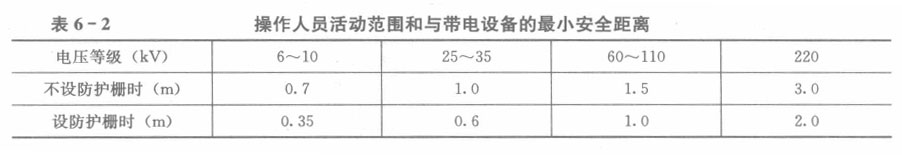 进行电缆线路实验时,操作人员活动范围和与带电设备的最小安全间隔,应恪守表6一2的规则。